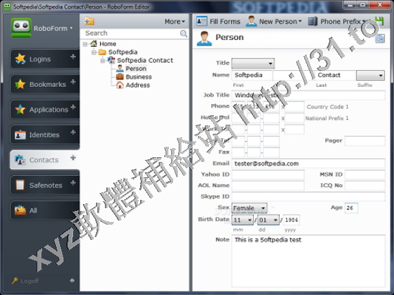 RoboForm allows you to define your personal profile