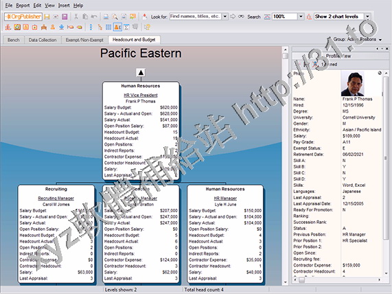 OrgPublisher Premier提供超準確的,視引人注目的組織結構圖,並在同行業中的勞動力報