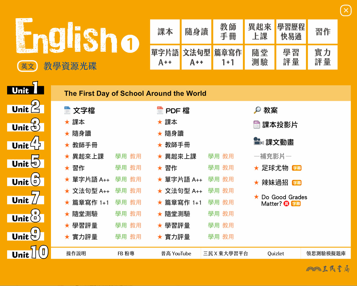 112學年上學期 高中 三民版 英文科 1年級 教學光碟