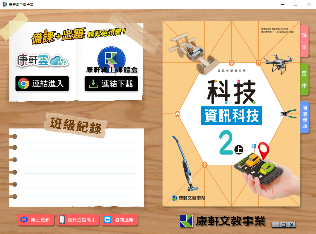 112學年上學期 國中 康軒版 資訊科技電子書 2年級(含課本、習作含解答、教學資源)教學光碟