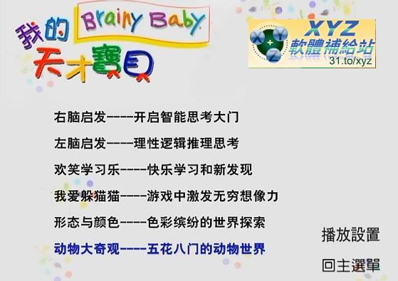 這是一套可以幫助嬰幼兒腦力、智慧發展的影片。提供一個全方位的幼兒學習基礎,讓