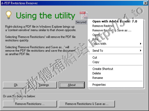 A-PDF Restrictions Remover v1.6.9 英文正式版(PDF文檔的密碼破解軟體)