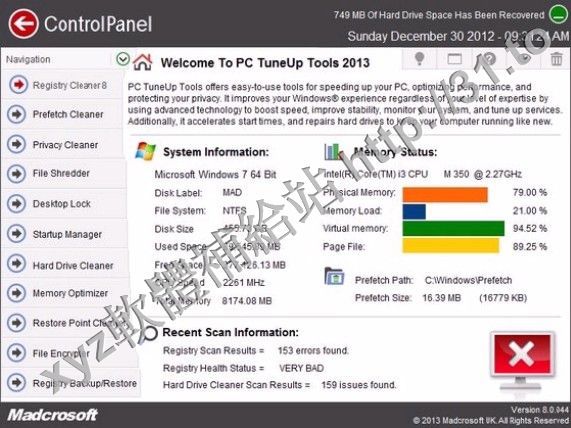 Madcrosoft PC TuneUp Tools 2013 v8.0.044.b.01.01.2013 英文正式版(系統優化軟體)