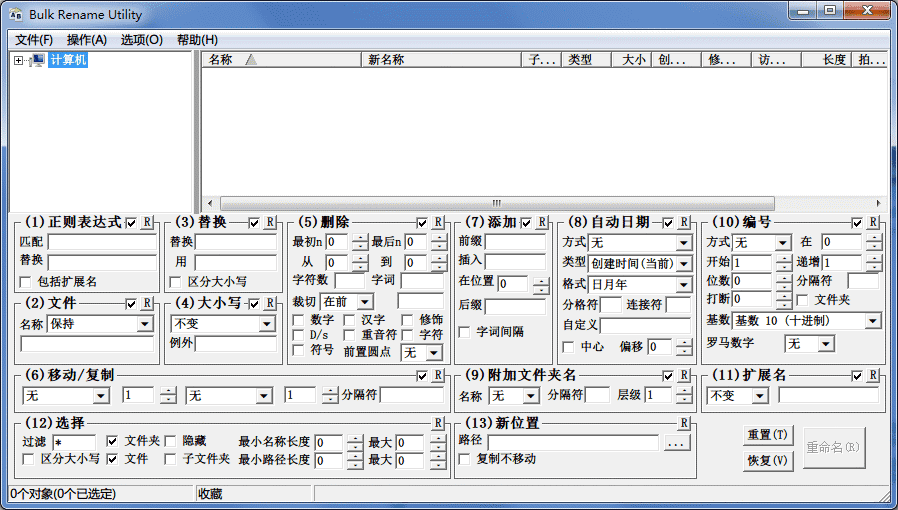 初見Bulk Rename Utility ,你可能會被其多而雜亂的使用者介面而感到頭疼,但是在功能方面確實強大!它支援為檔案名稱添加日期,自動編號,批量刪除或插入指定字元到指定位置,批量替換指定字元,添加首碼或尾碼,批量刪除數位、漢字等多達13項操作內容。