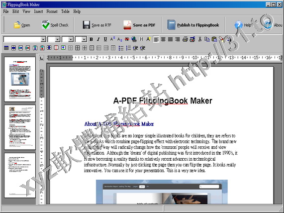 輯器,文字處理書的內容,然後選擇一個主題,從預設FlippingBook設備,最後使用SWF