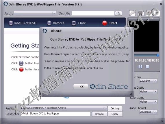 OdinShare Odin Blu-ray DVD to iPod Ripper v9.8.2 英文正式版(視頻轉換軟體)